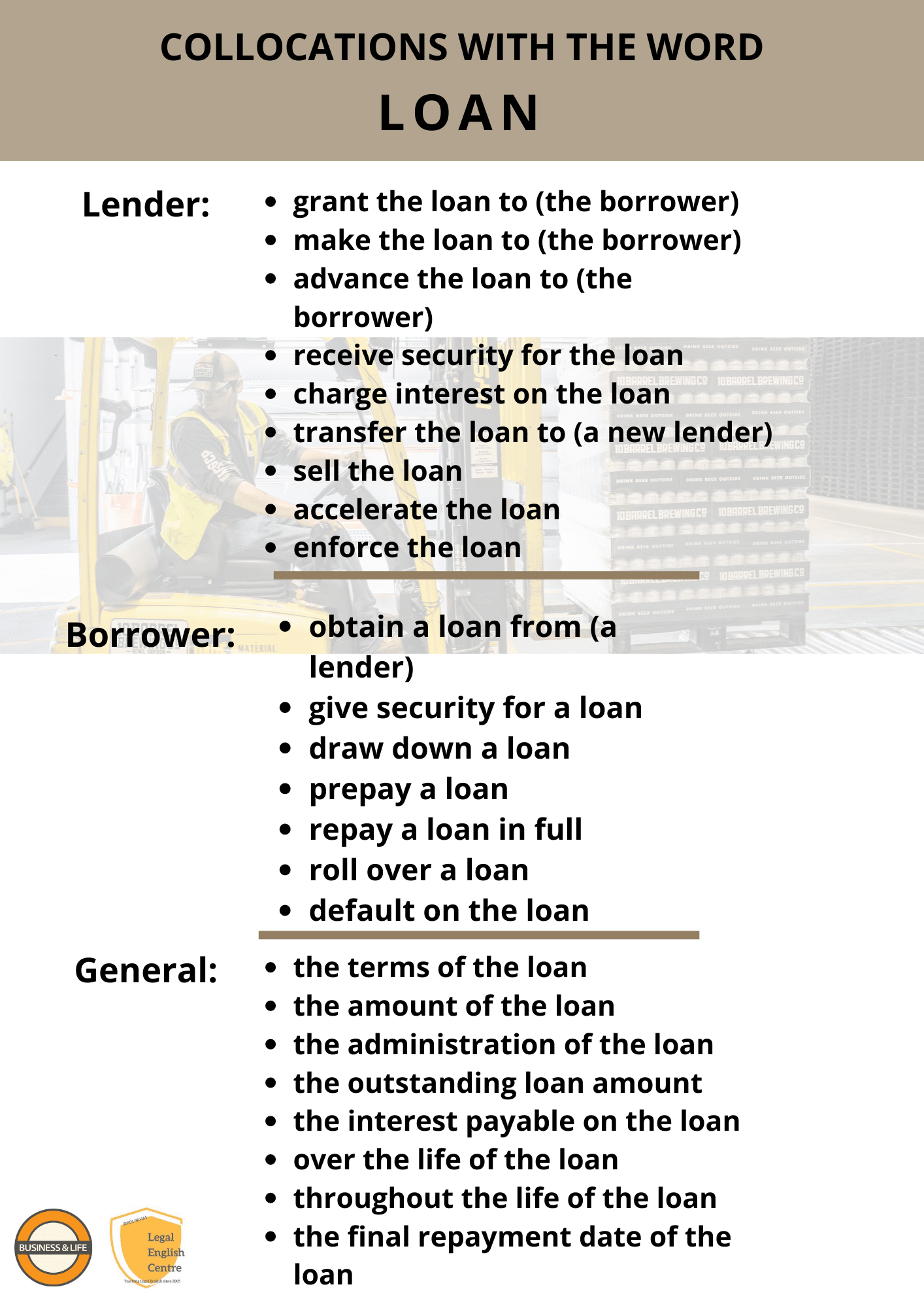 LOAN collocations – a list of phrases with the word LOAN. Whether you need a loan facility or are drafting a loan agreement, you will find these phrases useful.