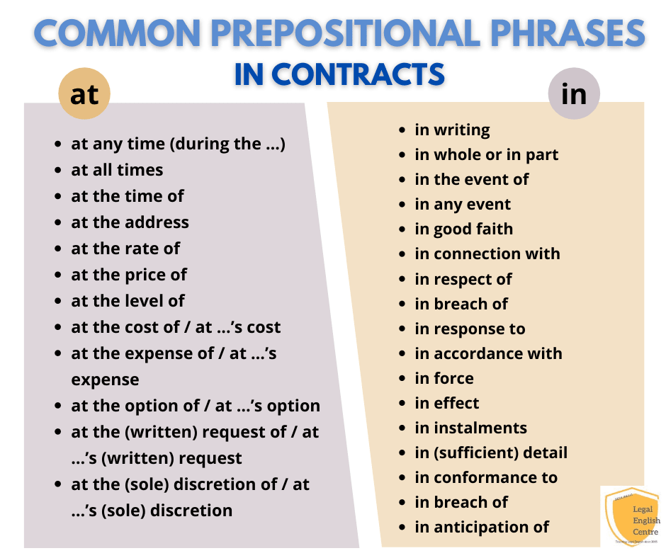 Common prepositional phrases in contracts