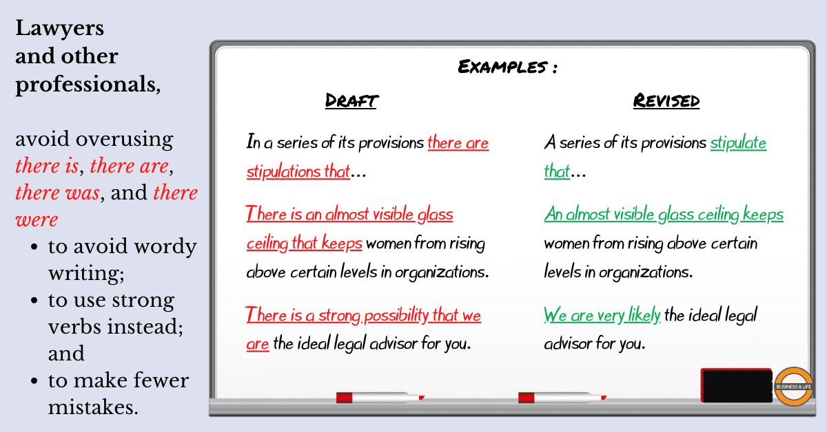 One tip that helps professionals use short (good style) and clear (good style, obviously) sentences is to avoid using phrases with ‘there’.